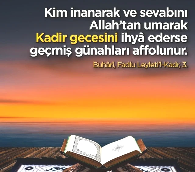 “Kadir gecesini, fazilet ve kutsiyetine inanarak ve sevabını yalnız Allah’tan bekleyerek ibadet ve taatle geçiren kimsenin -kul hakkı hâriç- geçmiş günahları bağışlanır.” (Müslim, Müsâfirîn, 175)